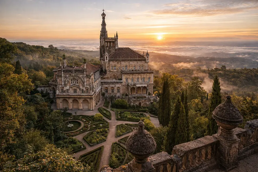 Finish at Buçaco Palace and Cruz Alta, where Neo-Manueline architecture and panoramic views create one of the most memorable finales in Central Portugal.